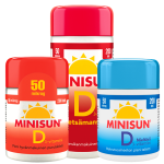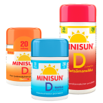 Minisun D-vitamiinitabletit sisältävät 20 mikrogrammaa hyvin imeytyvää D3-vitamiinia. Kaksi makua tai nieltävä tabletti. Ravintolisä.